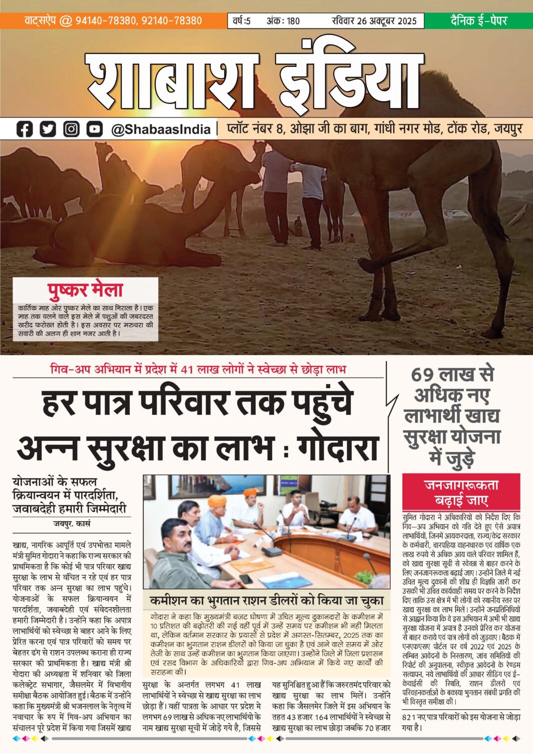 ePaper 26 Oct 2025 By shabaasindia October 26, 2025 0 18 Share FacebookTwitterPinterestWhatsApp 26-Oct-SI-Newspaper Related TagsFourth FeaturesOther Features Share FacebookTwitterPinterestWhatsApp Previous article20 Oct 2025Next article31 Oct 2025 - Advertisement - LEAVE A REPLY Cancel reply Comment: Please enter your comment! Name:* Please enter your name here Email:* You have entered an incorrect email address! Please enter your email address here Website: Save my name, email, and website in this browser for the next time I comment. Δ Latest article सटीक डायग्नोसिस ने दूर की भ्रांति, फीटल मेडिसिन विशेषज्ञ डॉ. आशीष चौधरी की जांच में स्पष्ट हुई शिशु की वास्तविक स्थिति March 1, 2026 भक्ति, एकता और अनुशासन का संगम: सावरदा में महासमिति का छठा मासिक पूजन विधान संपन्न February 28, 2026 सावरदा सिद्ध क्षेत्र में उमड़ा भक्ति का सैलाब: महासमिति का छठा मासिक पूजन विधान संपन्न February 24, 2026 शिवम दुबे का ‘हरफनमौला’ प्रहार: करियर का पहला विश्वकप अर्धशतक जड़ा; वरुण चक्रवर्ती की फिरकी में उलझी डच टीम February 18, 2026 भक्ति और उल्लास के साथ नव वर्ष का स्वागत: स्वस्तिक ग्रुप ने चूल्हिरी मंदिर में की पूजा-अर्चना February 4, 2026
