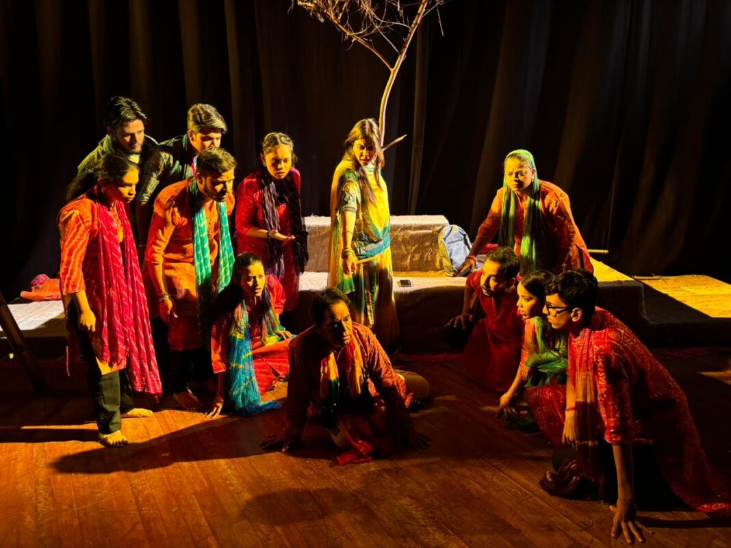 जयपुर। जवाहर कला केंद्र के रंगायन सभागार में बुधवार को वीणा पाणी कला मंदिर समिति द्वारा प्रस्तुत सामाजिक–नाट्य प्रस्तुति “पगला गयी धानका” का मंचन हुआ, जिसमें एक सरपंच और उसकी पत्नी की मनोवैज्ञानिक और सामाजिक त्रासदी को अत्यंत प्रभावपूर्ण रूप में प्रस्तुत किया गया। यह प्रस्तुति उत्तर क्षेत्र सांस्कृतिक केंद्र, पटियाला के सहयोग से 30 दिवसीय कार्यशाला के अंदर आयोजित हुई।
