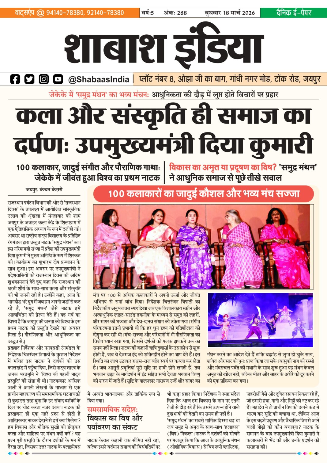 ePaper 18 March 2026 By shabaasindia March 17, 2026 0 0 Share FacebookTwitterPinterestWhatsApp 18-March-SI-Newspaper-1 Related TagsFourth Features Share FacebookTwitterPinterestWhatsApp Previous article17 march 2026Next articleश्री महावीरजी में आधुनिक चिकित्सा सुविधाओं का विस्तार: 22 मार्च को होगा ऑपरेशन थिएटर और आई-ओपीडी का उद्घाटन - Advertisement - LEAVE A REPLY Cancel reply Comment: Please enter your comment! Name:* Please enter your name here Email:* You have entered an incorrect email address! Please enter your email address here Website: Save my name, email, and website in this browser for the next time I comment. Δ Latest article श्री महावीरजी में आधुनिक चिकित्सा सुविधाओं का विस्तार: 22 मार्च को होगा ऑपरेशन थिएटर और आई-ओपीडी का उद्घाटन March 17, 2026 मानव सेवार्थ महा-रक्तदान शिविर संपन्न: आदिनाथ जयंती पर ‘रक्तवीरों’ ने पेश की सेवा की मिसाल March 13, 2026 सटीक डायग्नोसिस ने दूर की भ्रांति, फीटल मेडिसिन विशेषज्ञ डॉ. आशीष चौधरी की जांच में स्पष्ट हुई शिशु की वास्तविक स्थिति March 1, 2026 भक्ति, एकता और अनुशासन का संगम: सावरदा में महासमिति का छठा मासिक पूजन विधान संपन्न February 28, 2026 सावरदा सिद्ध क्षेत्र में उमड़ा भक्ति का सैलाब: महासमिति का छठा मासिक पूजन विधान संपन्न February 24, 2026